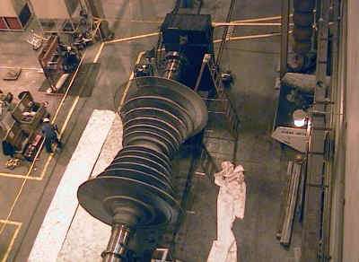 Dynamic balance of steam turbine rotor. Prime repaired rotor with new shaft and assembled all stages of rotor o new shaft.